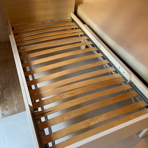 IKEA SLÄKT / NATTAPA udtræksseng i hvid farve med lamelbund.