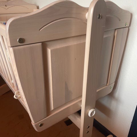 kroge så man kan sætte seler fast så barnet ikke kan kravle ud af vuggen mål indeni længde 87 cm bredde 42 cm højde 72 cm
