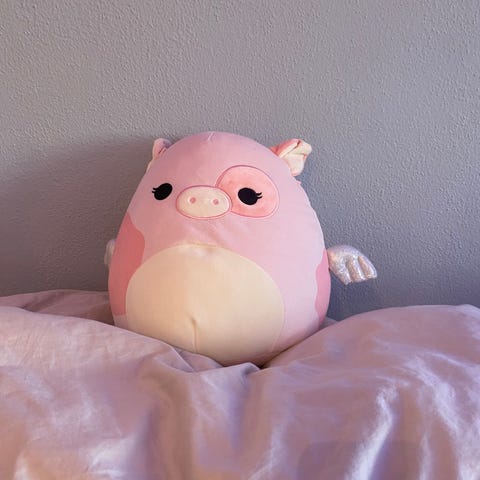 Squishmallows grønt plys legetøj med broderede detaljer, blødt materiale og rund form. Egnet som bamse eller krammedyr til børn.