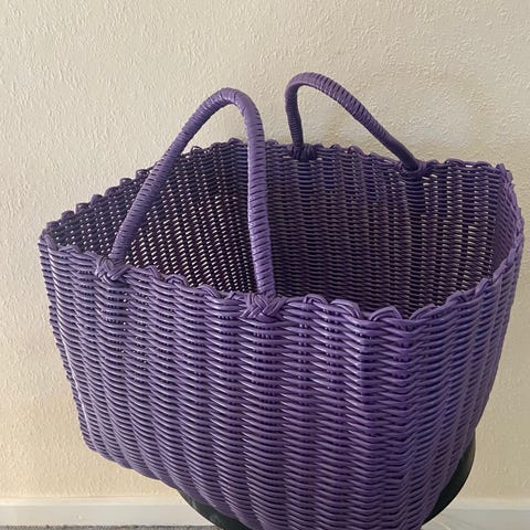 Lys grøn oval kurv i flettet plastik/kunstmat