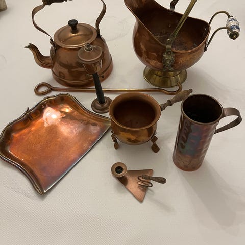 kobber, antikt kobber, kobbergryde, kobberkedel, kobberpande, tinforet, vintage køkkengrej, æbleskivepande, kobbersi, antik køkken, kobbersæt, dekoration