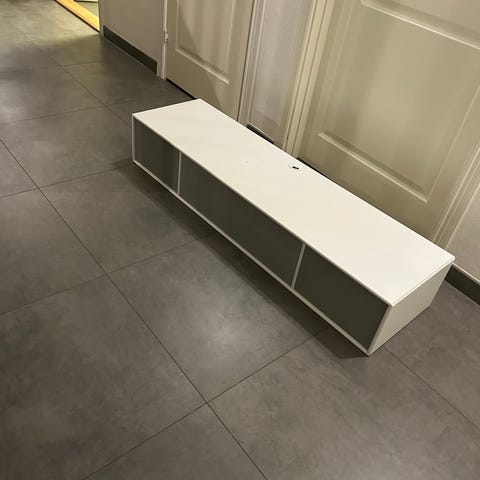 Perforerede klaplåger i lysegrå, så man kan have den lukket og stadig bruge sin fjernbetjening.