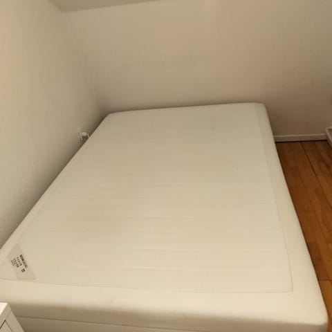 IKEA Madras Dobbel 140x200 cm i hvid farve. Madras med standardmål, egnet til dobbeltseng. Materiale og specifikke modeloplysninger ikke angivet. Velegnet til brug i soveværelse for voksne. Sengekappe medfølger for 500kr ekstra