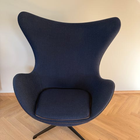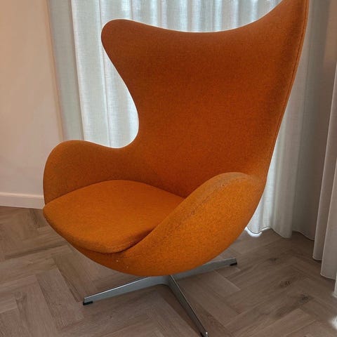 Den ikoniske stol, "Ægget", fejrede sit 50-års jubilæum med en særlig udgave. Denne jubilæumsudgave af stolen, sammen med den matchende skammel, blev fremstillet i en begrænset serie på 999 stykker af Fritz Hansen i 2008. Hver stol er individuelt nummereret, hvilket gør den til et unikt samlerobjekt. Stolen har en bronzebase, fronten er polstret i brunt læder, og bagsiden er dækket af brunt ruskind.