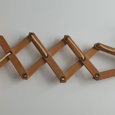 Vintage Lauritz Knudsen sakselampe i ubehandlet lyst træ. Model LK 96 sakselampe, der kan sættes til både opadgående og nedadgående lys. Skærmstativet er dog rustent.