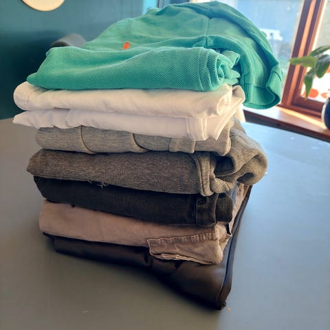 Obs. Blå, gul bluse og orange t-shirt er solgt