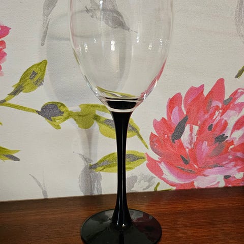 Sælger disse smukke og stilrene vinglas med sort stilk. Glasset har et enkelt og moderne udtryk, der passer perfekt til både hverdag og festlige lejligheder.