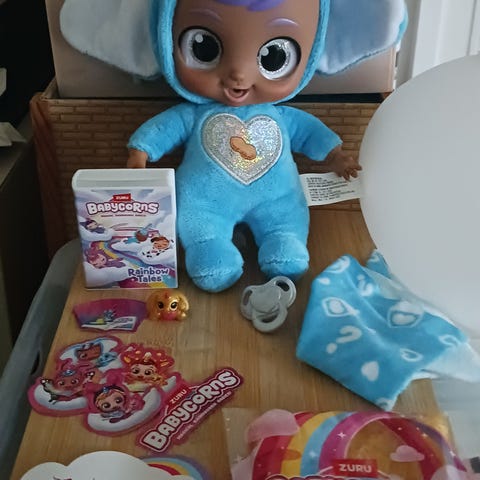 Sød original Baby Beans® dukke fra A-Z Techs Inc. (slut 90’erne). Dukken er ca. 13 cm og kommer i blå fleece-dragt med mærke på maven og original clip-on krog på ryggen. Perfekt til taske, barnevogn eller som samlerdukke.