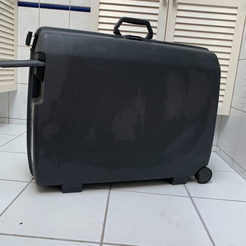 Fin hardcase kuffert produceret af Samsonite. Har indkapslede hjul, kodelås og sidelåse.