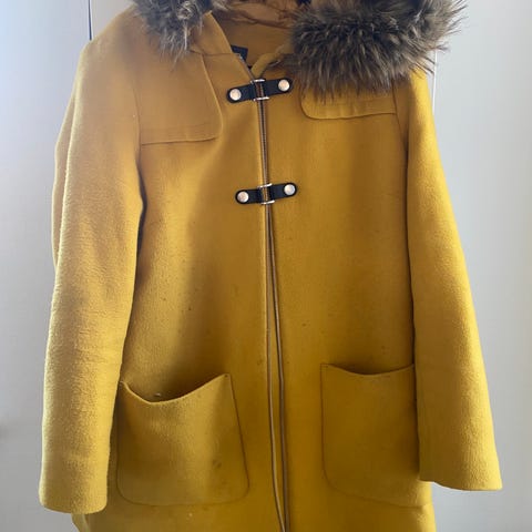 Flot sort uldfrakke fra ESPRIT, størrelse S (US/UK S/M) — kun brugt et par gange, derfor sælges den videre, da jeg ikke får den brugt. Frakken har stået pænt og fremstår i rigtig god stand. Den har høj krave og et stilrent design, som passer både til hverdag og mere oplagte lejligheder. Giv den et nyt hjem – bud modtages.“