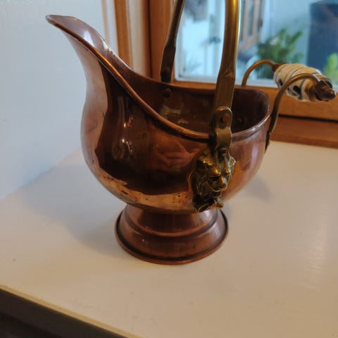 Fin blå/turkis metalspand med låg. Den står rigtig flot med fin patina. Låger går lidt stramt. 26 cm høj ekskl håndtag, længde 40 cm, bredde 27 cm