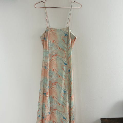 Sød sommerkjole med flot mønster, flagrende ærmer og bindebånd til livet🤩☺️