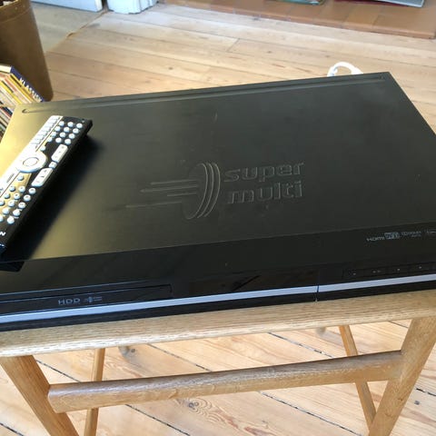 DVD Afspiller i sølvfarve. Understøtter DVD-video, CD-afspilning og flere formater som vises på frontpanelet. Udstyret med standard funktioner til afspilning.