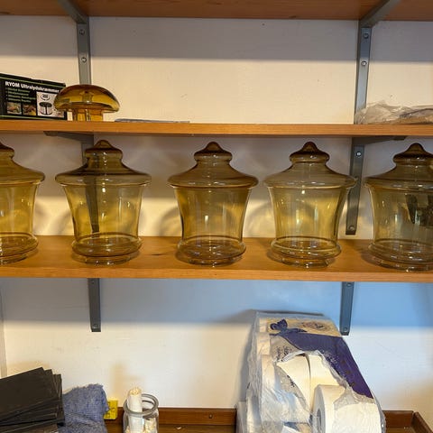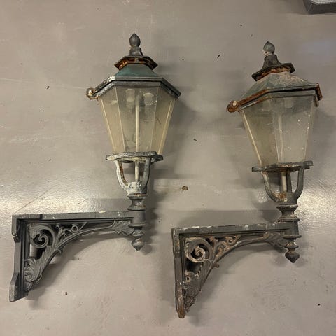 Udendørslampe med ravfarvet glas. Fra 70'erne (antageligt svensk, Gnosjö konstsmide). Fin brugt stand.