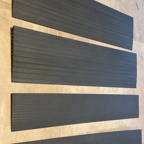 Kørestolsbrugerempe, Kørestolrampe b ca 76 cm l 1,6 kan trækkes ud til ca 3 m