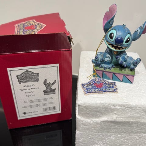 Disney Stitch nøglering i lilla plast med pink krog til fastgørelse. Figuren har glimmer inden i sig og kan ses bedst når man ryster den. Passer til brug som nøglering eller pynt på tasker.