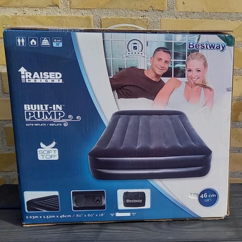 Den bløde overflade og den stabile konstruktion sikrer en god nattesøvn, mens den integrerede elektriske pumpe gør det hurtigt og nemt at pumpe madrassen op på få minutter. Med en højde på 42 cm føles den næsten som en almindelig seng, og den medfølgende opbevarings- og transporttaske gør den let at tage med overalt.