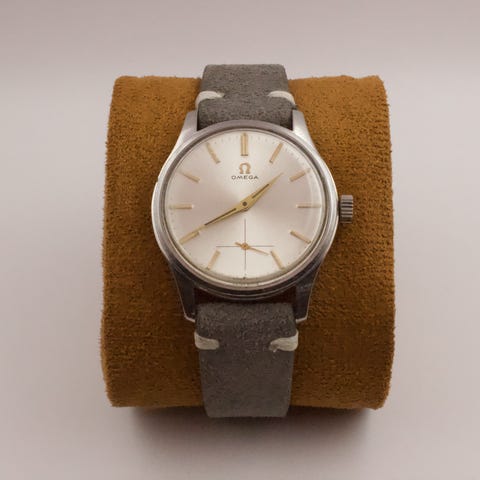 Flot sjældent Omega dateret til 1930 jf serienr. Uret er i rigtig god stand og kun med alm brugsspor. Monteret med sjældne guldvisere. Patineret grå skive. Gravering på bagkassen. Monteret på flot vintage stræklænke der nok passer til håndled omkring 19cm. 30,3 mm uden krone. 18mm mellem horn. Cal.26,5. Går og holder tiden flot. Manuelt optræk.
