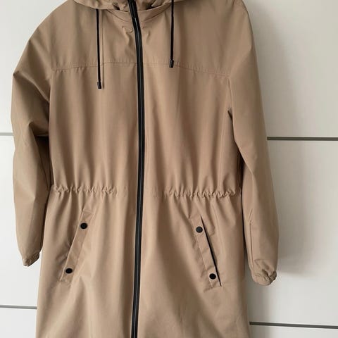 Fransa Andet udendørstøj til kvinder i størrelse M. Jakken er grå og har en justerbar talje med snore, lynlås og knaplukning foran. Ærmerne har knapper ved manchetterne, og jakken har flere lommer foran og på ærmet. Jakken er egnet til udendørs brug.