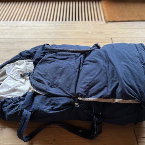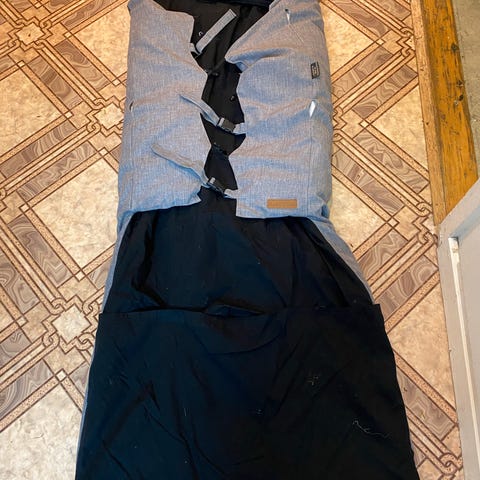 BabyTrold kombipose i grå og sort farve. Posen har justerbare stropper og spænder for at sikre komfort og sikkerhed for barnet.