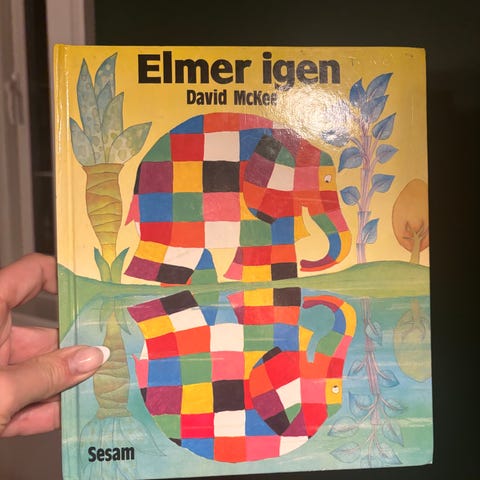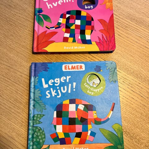 David McKee Elmer Kig og find Børnebog med farverige illustrationer af elefanter og andre dyr. Bogen er en papbog.