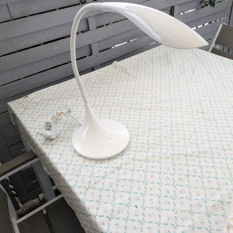 Nielsen Light Mamba bordlampe med en rød inderskærm og klar yderskærm.