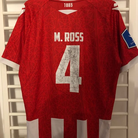 AaB trøje fra 2022-23 med Andreas Poulsen og superliga Badge. Str XL