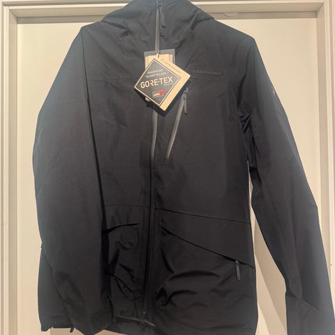 Komplet skaljakke med Gore-Tex membran med 28.000mm vandsøjletryk - fittet er oversize, men lommerne sidder de rigtige steder.