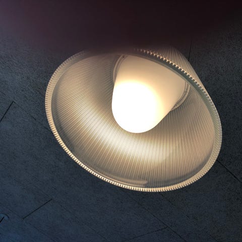 Kartell Philippe Starck lampe med transparent skærm i plastmateriale. Lampen har et moderne design med en konisk form og ribbet tekstur. Egnet til indendørs brug som belysning i forskellige rum. Især god over spisebord, da den giver et stærkt, men behageligt lys.