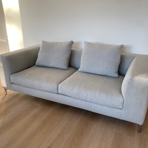 Sofaen måler 228 i bredden, 83 i længden og 36 i sædehøjde.