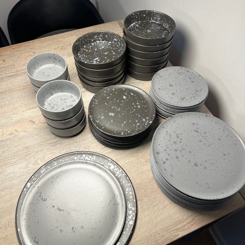 Der er ingen skår eller revner i skålene. Tåler opvasker, mikroovn og ovn.