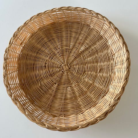 To porcelænsfade i fletkurv. Det ene fad er ovalt og har størrelsen 27 cm x 18 cm. Det andet fad er rundt og har en diameter på 25 cm. Fadene har aldrig været brugt. Samlet pris 125 kr.