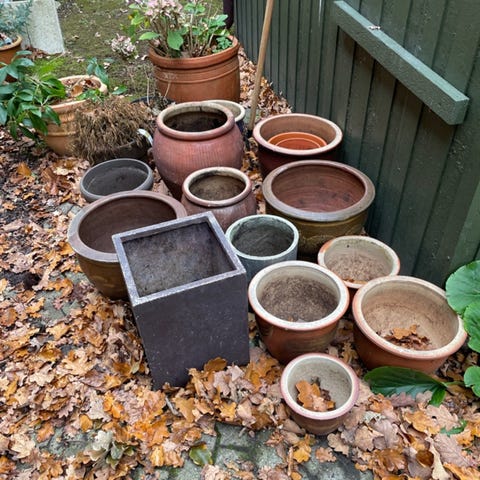 potter og andet, fra mine forældres gartneri, ting brugt til kranse/adventskrans og til at lave dekorationer, oasis, runde kranse m. små blomster (nogle kunstige) tillige en del andre ting : hykro , tråd, gl. rod til dekoration og meget mere spørg og se billederne priser fra