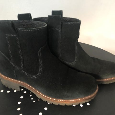 ECCO Støvler i lys brun ruskind, størrelse 38. Støvlerne har en kort hæl og lynlås på siden for nem lukning. Materialet er ruskind, hvilket giver et blødt og fleksibelt ydre. Velegnet til dagligt brug og forskellige vejrforhold. Kan sendes.