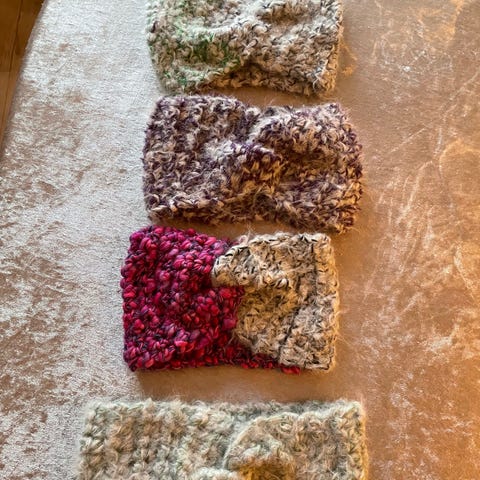 Jeg hækler disse super lækre, bløde og varme pandebånd.