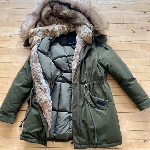 Herudover har denne kvalitetsjakke en aftagelig hætte med indvendig pels, samt krave - ligeledes i pels i vaskebjørn/kanin.