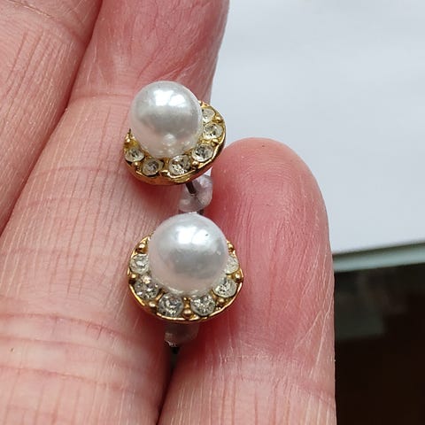 Fine og flotte er disse øreringe lavet i perler Guld, sort og hvid. Længden er på 15 cm og 4 cm i bredden. Helt igennem i orden