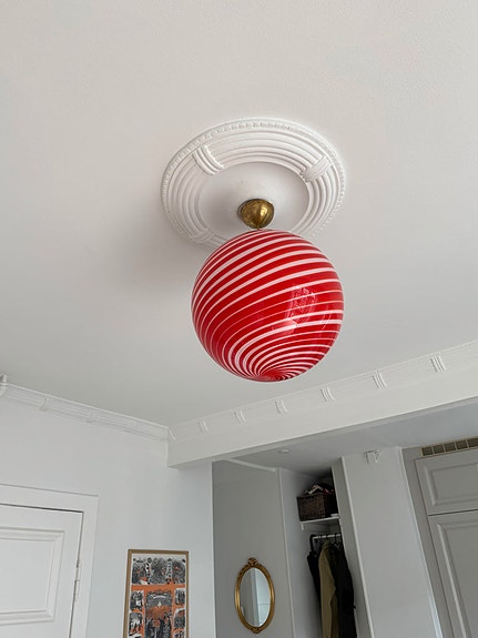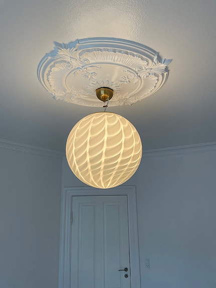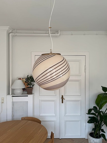 Kæmpe Murano peacock pendel i den flotteste blå farve og et rigtig fint ophæng i patineret messing.
