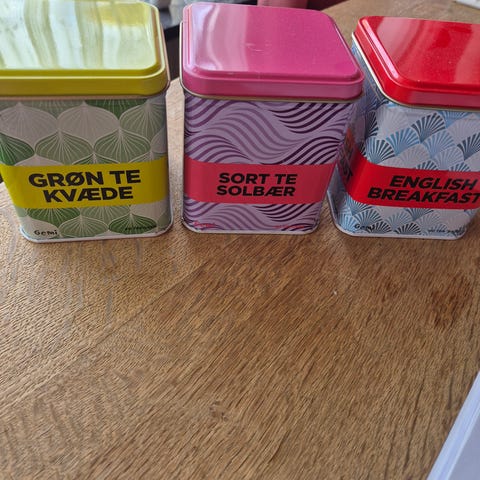 Thedåse, Ukendt, 1 stk. The dåse i grøn med rødt motiv sælges.