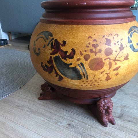 Meget tung stor krukke Højde 77 cm ,med elefant motiv .