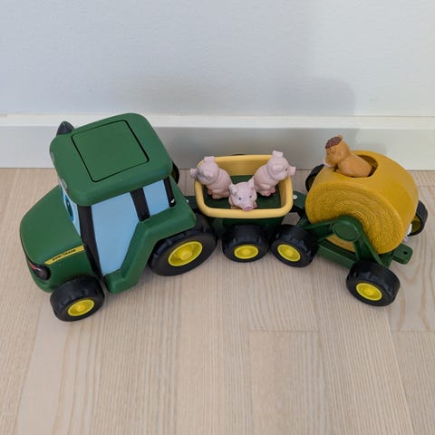 Tryk på den store knap på førerhusets tag og traktoren ruller af sig selv. Det er sjovt 🤗