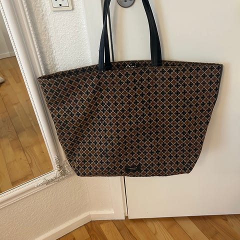 Dejlig rummelig taske i skøn mørkeblå farve. Tasken er brugt sparsomt. Der medfølger toilet pung og dustbag. Desværre er der en kaffeplet i bunden på Forêt. Ikke forsøgt fjernet- men er formentlig væk med vanish