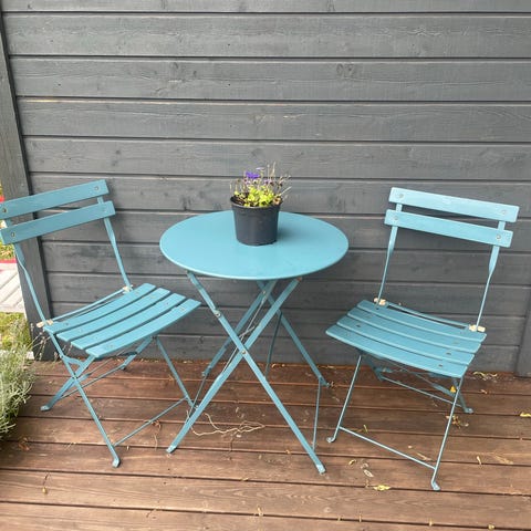Café bord at gamle stilladsplanker med meget stabilt inderste i pulverlakeret stål og støbejern størrelse 62x72cm