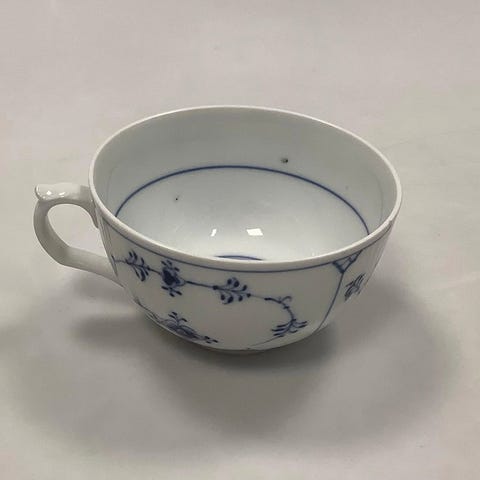 Royal Copenhagen Musselmalet Riflet Bouillon Kop med underkop No. 344 2. Sortering Kop Diameter: 9,7 cm / 3.82 inch