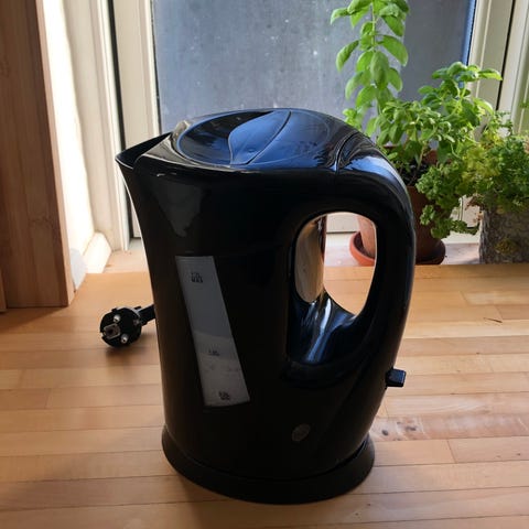 Elkedel i glas med sort håndtag og låg. Kapacitet på 1,7 liter. Egnet til opvarmning af vand til drikkevarer og madlavning.
