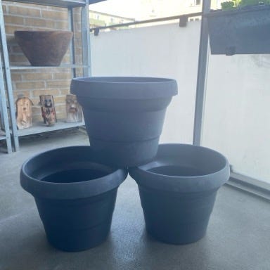 plast vase, og andre gartneriartikler, f.eks. potte til at hænge. aflang potte til små tulipaner, dekorations plastskåle til borddekorationer,70 brune poser til frugt eller kartofler eller andet og meget mere se billederne og spørg til det hele. Priser fra