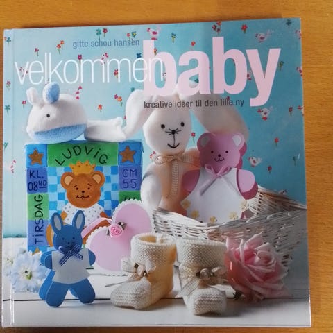 Velkommen baby, Gitte Schou Hansen, emne: håndarbejde, Kreative ideer til den lille ny. Pænt eksemplar. Udgivet af Aschehoug i 2005. Hardback. 72 sider.