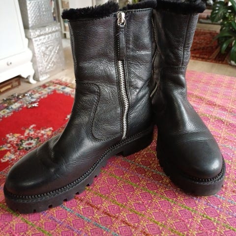 Støvlen har et varmt uldfoer og en grov og fleksibel gummisål.