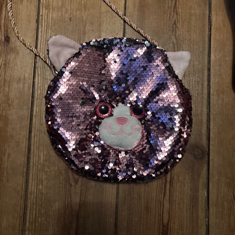 Sød taske til den lille pige fra Die Spiegelburg. Farven er pink. Målet ca 30 gange 20 cm. Med hank, skulderrem, inderrum og mønstret foder. På tur eller til leg.
