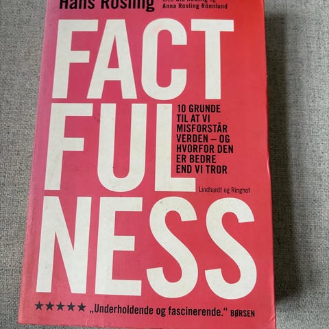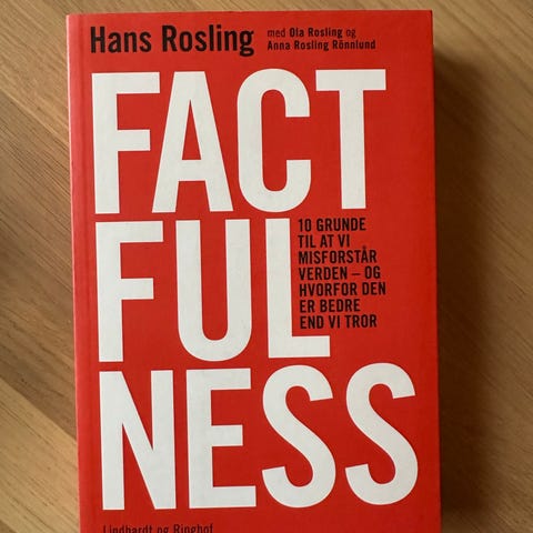 Hans Rosling Factfulness Bog på dansk. Indeholder 10 grunde til, at vi misforstår verden, og hvorfor den er bedre end vi tror. Udgivet af Lindhardt og Ringhof. Bogen er informativ og fokuserer på fakta om verdens udvikling og misforståelser.